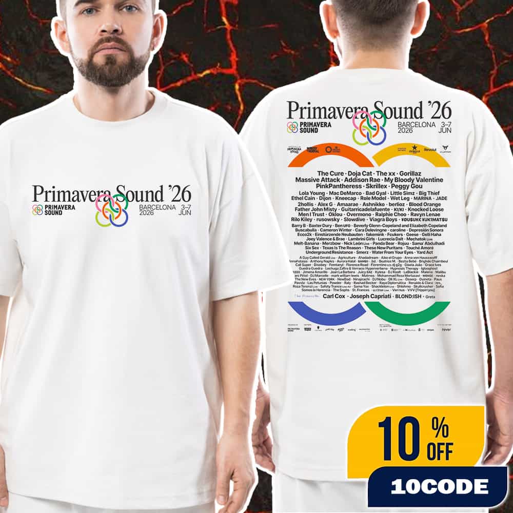 This official Primavera Sound 2026 unisex t-shirt merchandise commemorates one of Europe’s most prestigious music festivals taking place June 3-7, 2026 at Barcelona’s iconic Parc del Fòrum, featuring an extraordinary “intergenerational lineup” headlined by legendary post-punk icons The Cure, pop superstar Doja Cat, indie electronic pioneers The xx, virtual band innovators Gorillaz, and trip-hop legends Massive Attack, alongside contemporary chart-toppers including PinkPantheress, Skrillex, Peggy Gou, rising stars like Addison Rae, and My Bloody Valentine in what marks the festival’s 24th edition and earliest lineup announcement in its history. The premium merchandise showcases the complete festival poster featuring over 150 artists across five transformative days, including the traditional free opening party on June 3rd, core festival days June 4-6 with performances at Parc del Fòrum and Auditori Fòrum venues, and the electronic-focused Primavera Bits closing party on June 7th with renowned DJs Carl Cox, Joseph Capriati, BLOND:ISH, and Greta, representing the festival’s evolution from indie rock showcase to genre-spanning cultural phenomenon. Located at Barcelona’s stunning waterfront venue Parc del Fòrum, which offers Mediterranean Sea views and served 293,000 attendees in 2025, Primavera Sound has established itself as the definitive European festival for discovering emerging artists while celebrating established legends, with this 2026 edition featuring notable returns from The xx and Gorillaz after nearly a decade, plus The Cure’s historic connection to the festival where they hold the record for longest performance in festival history. Crafted from premium materials with vibrant festival artwork featuring Primavera’s signature colorful circular logo design, this official merchandise represents more than concert apparel—it’s a collectible piece celebrating Barcelona’s cultural significance, the Mediterranean music festival experience, and one of the most diverse and carefully curated lineups in modern festival history, making it essential for indie music enthusiasts, festival collectors, and fans of Barcelona’s world-renowned music scene who recognize Primavera Sound as the gold standard for discovering tomorrow’s headliners while honoring music’s most influential pioneers.