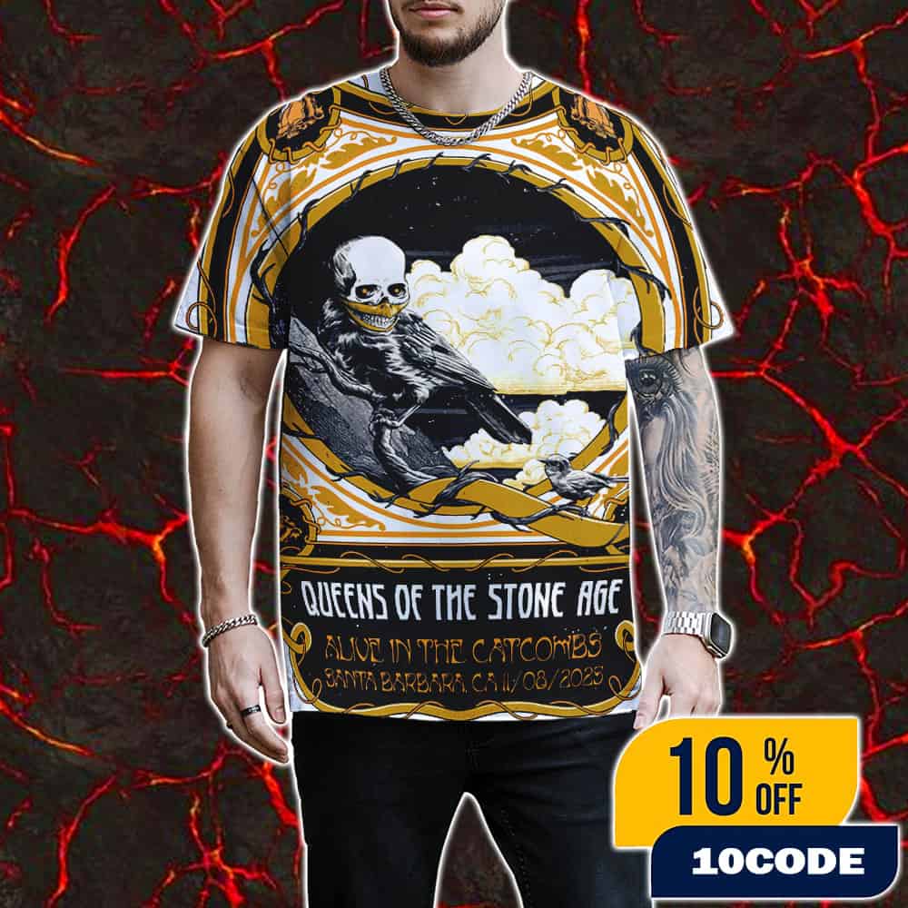 Queens Of The Stone Age Alive In The Catacombs Tour On November 8 2025 At Santa Barbara Poster Event Artwork By Pedro Correa All Over Print Graphic T-Shirt, Hoodie