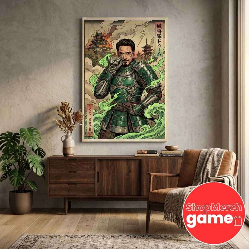 This exceptional wall art piece commemorates one of the most seismic narrative shifts in the Marvel Cinematic Universe, centered on the highly anticipated film Avengers: Doomsday, scheduled for theatrical release on December 18, 2026. The poster captures the stunning casting announcement that sent shockwaves through the entertainment world: Robert Downey Jr., the beloved actor who immortalized Tony Stark/Iron Man across eleven MCU films from 2008 to 2019, will return to the franchise not as a hero but as one of Marvel’s most formidable antagonists, Victor Von Doom, better known as Doctor Doom. This bold creative decision by Marvel Studios marks a historic moment in superhero cinema, as Downey transitions from the charismatic genius billionaire philanthropist who sacrificed himself in Avengers: Endgame (2019) to embody the brilliant, ruthless monarch of Latveria and master of both science and sorcery. Doctor Doom, created by Stan Lee and Jack Kirby, first appeared in The Fantastic Four #5 in 1962 and has long been considered Marvel Comics’ greatest villain, a character whose complex motivations stem from a traumatic childhood, a quest to save his mother’s soul from Mephisto, and an unwavering belief that only he possesses the intellect and will to save humanity by ruling it. The artistic presentation merges this Western superhero mythology with traditional Japanese Ukiyo-e aesthetics, the iconic woodblock printing technique that flourished during the Edo period (1603-1868) and was mastered by legendary artists like Katsushika Hokusai and Utagawa Hiroshige. By reimagining Doctor Doom through the lens of shogun and samurai warrior imagery, the design creates a powerful cultural fusion that emphasizes the character’s martial prowess, strategic genius, and sovereign authority, drawing visual parallels between feudal Japanese warlords and Doom’s absolute rule over Latveria. This stylistic choice resonates deeply with global audiences, particularly collectors who appreciate the intersection of contemporary pop culture and classical art forms. The December 2026 release positions Avengers: Doomsday as a major holiday tentpole event, continuing Marvel’s tradition of delivering universe-altering stories during premium theatrical windows. This artwork serves not merely as promotional material but as a collectible statement piece that documents a pivotal moment in franchise history, appealing to MCU enthusiasts, Robert Downey Jr. admirers, comic book purists, and art collectors who value the innovative blending of Eastern and Western visual storytelling traditions in a single, museum-quality canvas or poster format.