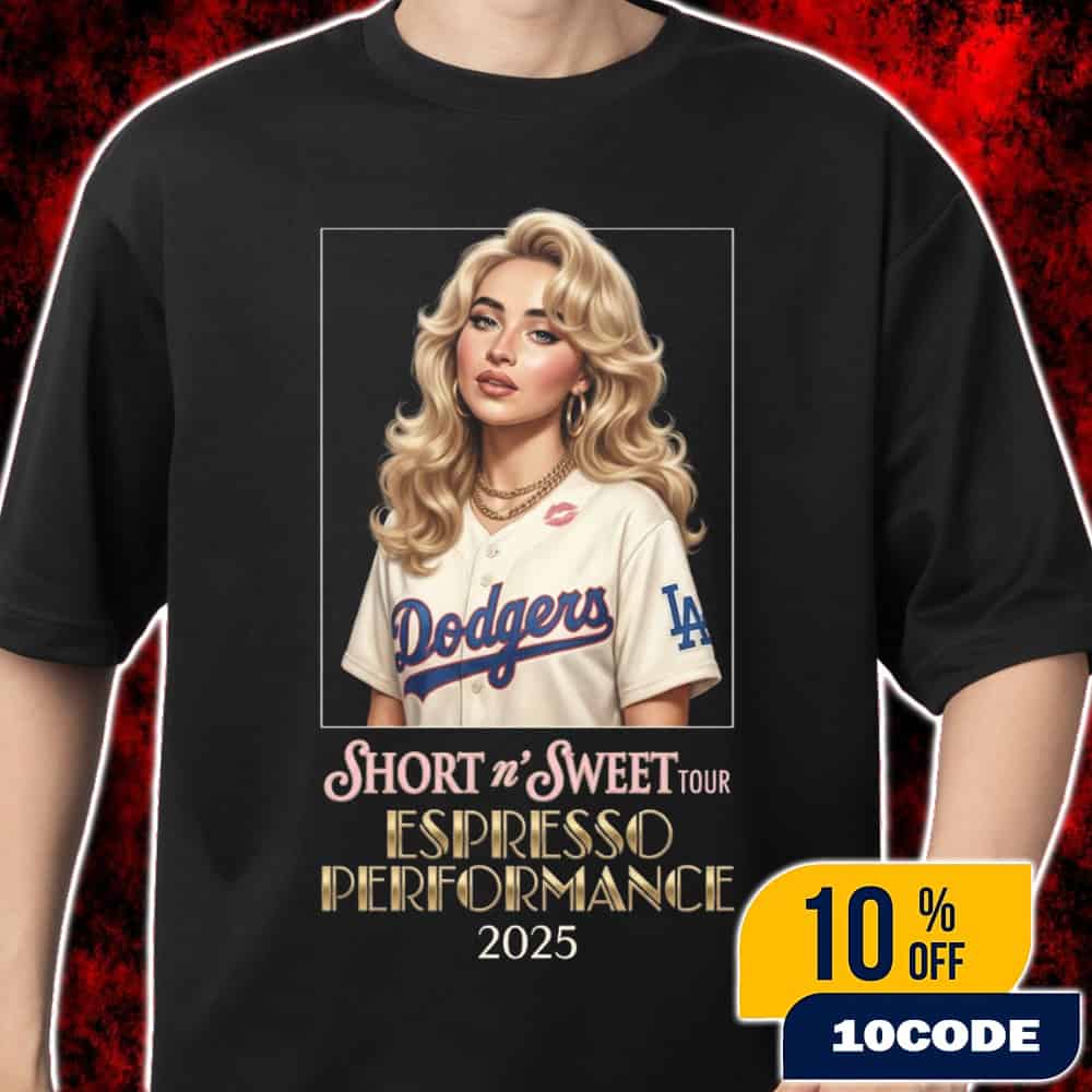 This exclusive unisex t-shirt commemorates Sabrina Carpenter’s unforgettable “Espresso” performance at Crypto.com Arena in Los Angeles on November 22, 2025, during her acclaimed Short n’ Sweet Tour. The merch captures a highlight moment from the fifth night of her six-show Los Angeles residency (November 16-23, 2025), when Carpenter performed her hit single “Espresso” while wearing a special Los Angeles Dodgers jersey with the number 69, creating a unique crossover between pop music and baseball culture. The Short n’ Sweet Tour, which launched in September 2024 to promote her sixth studio album of the same name, features support from Ravyn Lenae and Amber Mark, with shows starting at 7:00 PM and doors opening at 5:30 PM. This collaboration between the Grammy-nominated pop sensation and the iconic LA Dodgers represents a cultural fusion of two Los Angeles institutions, making this t-shirt a must-have collectible for fans who appreciate both Carpenter’s magnetic stage presence and the city’s rich sports heritage. The design celebrates the electric atmosphere of the Crypto.com Arena performance, where Carpenter’s chart-topping hits and theatrical stage production created an immersive concert experience that blends contemporary pop with nostalgic Americana aesthetics.