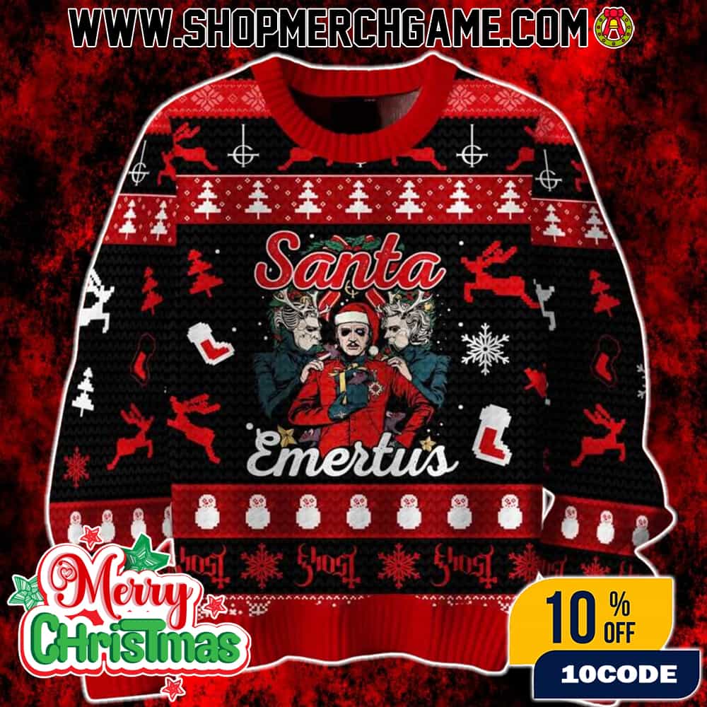 Santa Emeritus Ghost Band Ugly Sweater Rock Music Christmas Knit For Winter Parties