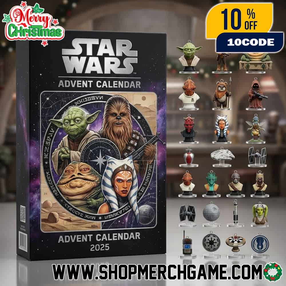 The Star Wars Advent Calendar 2025 featuring Yoda, Chewbacca, and Ahsoka Tano celebrates the iconic characters from the beloved franchise that continues its expanded universe with multiple projects including “The Mandalorian and Grogu” film set for May 22, 2026, “Star Wars: Starfighter” starring Ryan Gosling releasing May 28, 2027, and the highly anticipated Ahsoka Season 2 which began production after Star Wars Celebration 2025. This 24-day collectible ornament countdown showcases miniature decorative figures of the franchise’s most beloved heroes, featuring the wise Jedi Master Yoda whose 900-year lifespan and mastery of the Force made him one of the most powerful characters in Star Wars lore, the loyal Wookiee warrior Chewbacca who served as Han Solo’s co-pilot aboard the Millennium Falcon for decades of adventures, and the fan-favorite Togruta warrior Ahsoka Tano who evolved from Anakin Skywalker’s Padawan in The Clone Wars animated series to a legendary figure in her own Disney+ live-action series starring Rosario Dawson that explored the New Republic era and set up connections to Grand Admiral Thrawn’s return. Each ornament in this galactic holiday collection captures characters spanning multiple Star Wars eras and storytelling mediums, from the Original Trilogy’s iconic heroes and the Prequel Trilogy’s Jedi Council members to characters from animated series like The Clone Wars, Rebels, and The Bad Batch, plus fan favorites from modern Disney+ shows including The Mandalorian’s Grogu (Baby Yoda), Din Djarin, Boba Fett, and various droids, stormtroopers, and creatures that populate the galaxy far, far away. This advent calendar serves as the perfect gift for Star Wars enthusiasts who want to celebrate the December countdown with ornaments representing the franchise’s rich character legacy that has captivated audiences across nearly five decades, from George Lucas’s original 1977 vision through Dave Filoni and Jon Favreau’s expansion of the mythology via streaming series that continue introducing new generations to the enduring themes of hope, redemption, and the eternal struggle between light and dark sides of the Force. Available during the 2025 holiday season as Star Wars maintains its position as one of entertainment’s most successful franchises with upcoming content including Andor Season 2, Star Wars Visions Volume 3, the animated series “Maul: Shadow Lord” coming to Disney+ in 2026, and theatrical films that promise to expand the Skywalker Saga’s legacy into new territories of storytelling.