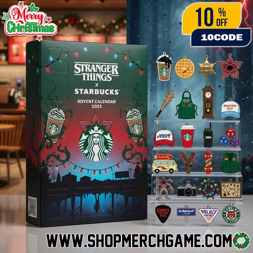 Stranger Things Season 5 x Starbucks Advent Calendar 2025 Ornament Collectible 24 Days Countdown Christmas Holiday Gift Set Blind Box Themed Decorations