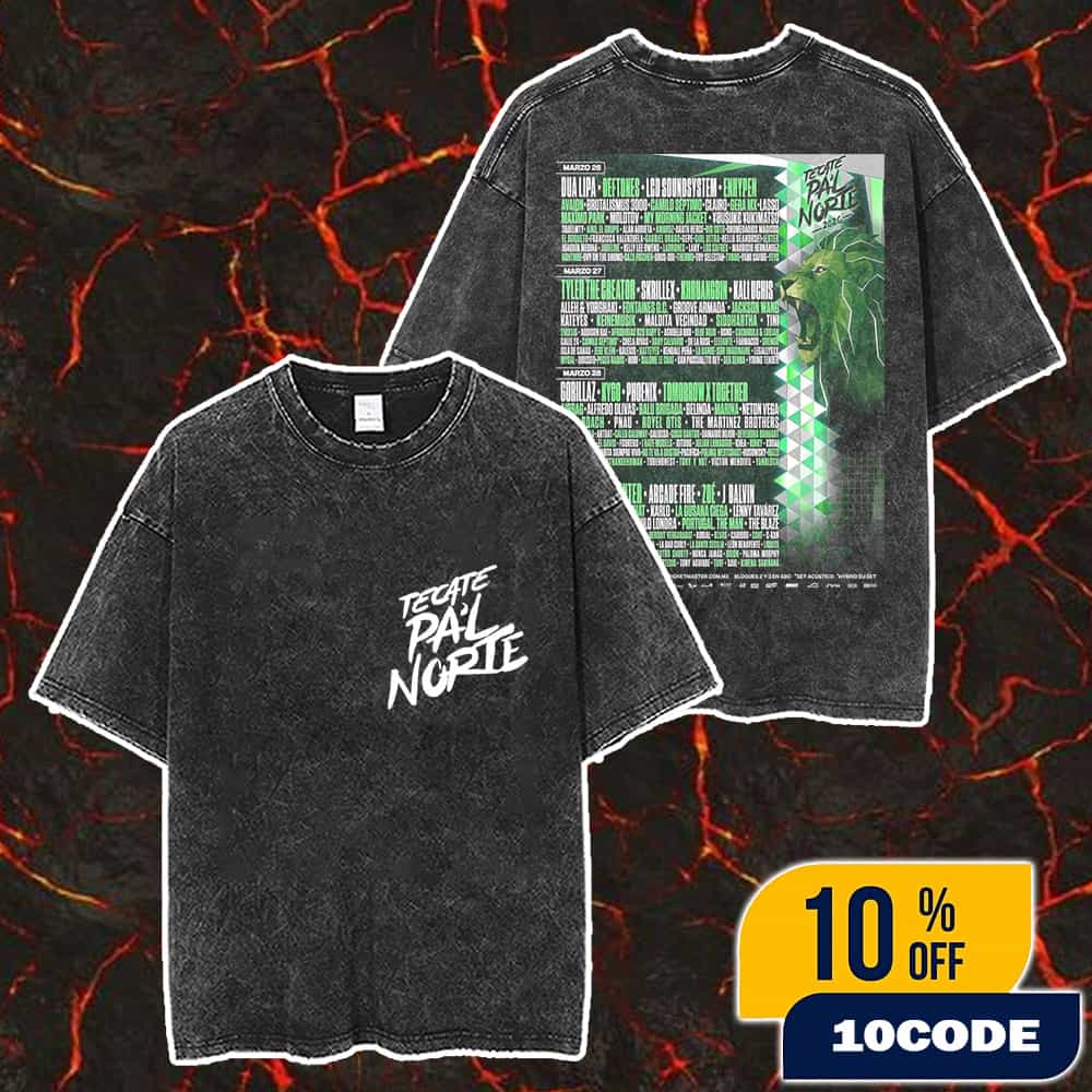 Tecate Pa’l Norte 2026 At Parque Fundidora Monterrey Nuevo Leon Mexico On 26-29 March 2026 Poster Lineup Merch Unisex Two Sided Washed T-Shirt