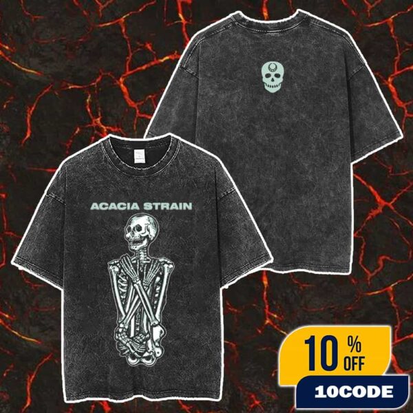 The Acacia Strain Band Merch New Collection Halloween 2025 Acacia O Strainative Skeleton Artwork Washed T-Shirt