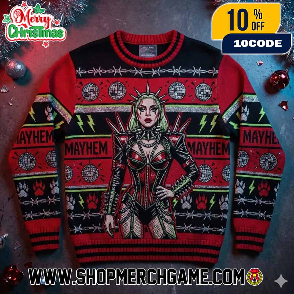 The Mayhem Ball Tour 2025 Lady Gaga Ugly Christmas Sweater Knitted Pullover Holiday Club Icon Disco Ball Lightning Celebrity Novelty Winter Gift