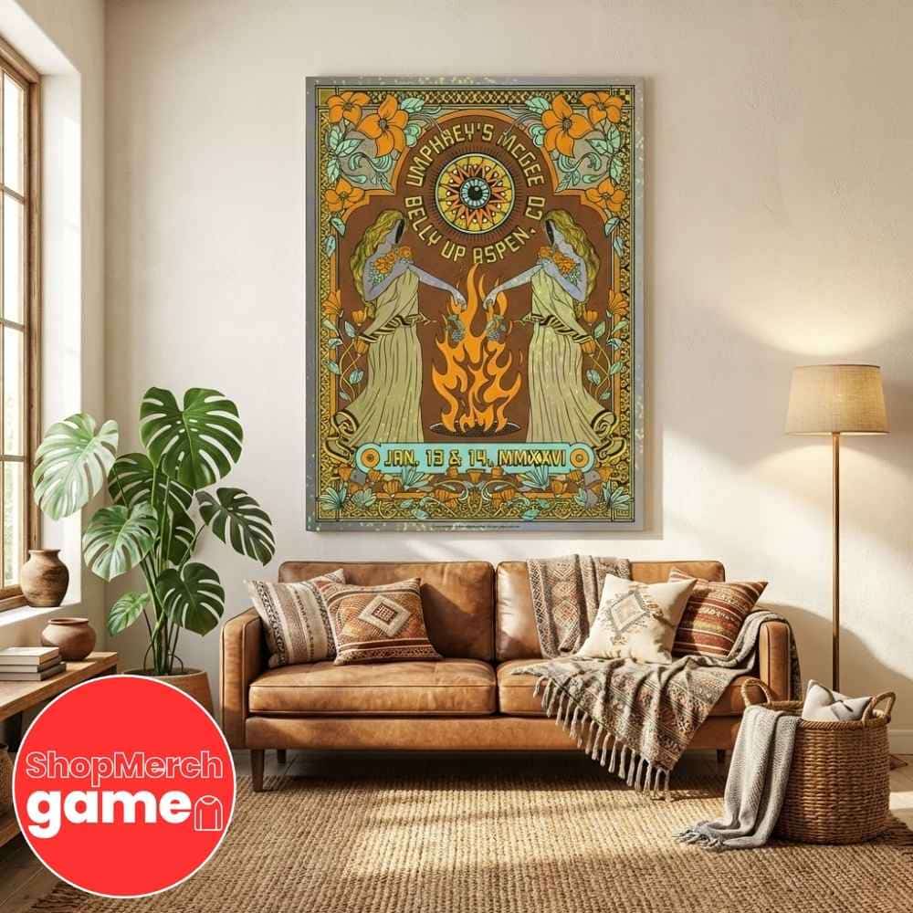 Umphrey’s McGee, the progressive improv-rock band originally formed in December 1997 at the University of Notre Dame in South Bend, Indiana, brings their genre-defying sound to the iconic Belly Up Aspen in Colorado for an exclusive two-night residency on January 13-14, 2026. This commemorative poster captures a landmark event at one of Colorado’s most legendary intimate venues, where Umphrey’s McGee—often stylized as UM—will showcase the musical virtuosity that has defined their nearly three-decade career spanning rock, metal, funk, jazz, blues, reggae, electronic, and progressive elements. The Belly Up Aspen, opened in 2005 by Michael Goldberg and hosting over 300 live concerts annually, has established itself as Aspen’s premier live music destination with a capacity of just 450 people, creating an extraordinarily intimate atmosphere for world-class performers ranging from The Killers to Snoop Dogg. For this January 2026 engagement, the Chicago-based sextet featuring founding members Brendan Bayliss on guitar and vocals, bassist Ryan Stasik, and keyboardist Joel Cummins will deliver their signature improvisational style influenced by progressive rock titans like King Crimson, Yes, Dream Theater, and Genesis, as well as heavy metal legends Iron Maiden, The Police, The Beatles, Pink Floyd, and Led Zeppelin. Umphrey’s McGee has distinguished themselves in the live music world as pioneers who launched UMLive.net in 2005, the first single-artist streaming service that archives every performance—a platform now integrated with Nugs.net alongside Pearl Jam and Bruce Springsteen—demonstrating their commitment to fan accessibility and live music preservation. The band’s breakthrough moment came at the inaugural 2002 Bonnaroo Music Festival in Manchester, Tennessee, where they outsold every artist on the bill including Widespread Panic, Trey Anastasio, and Norah Jones, performing before nearly 100,000 people. Since then, Umphrey’s has evolved into the headlining act and organizer of the annual Summer Camp Music Festival held at Three Sisters Park in Chillicothe, Illinois, solidifying their status as leaders in the jam band community. This two-night stand at 450 South Galena Street in Aspen represents a rare opportunity to experience Umphrey’s McGee’s unpredictable setlists, complex improvisation, and their innovative “Jimmy Stewart” technique in one of America’s most prestigious mountain resort towns, where the convergence of world-class musicianship and an acoustically superior venue creates an unforgettable concert experience.